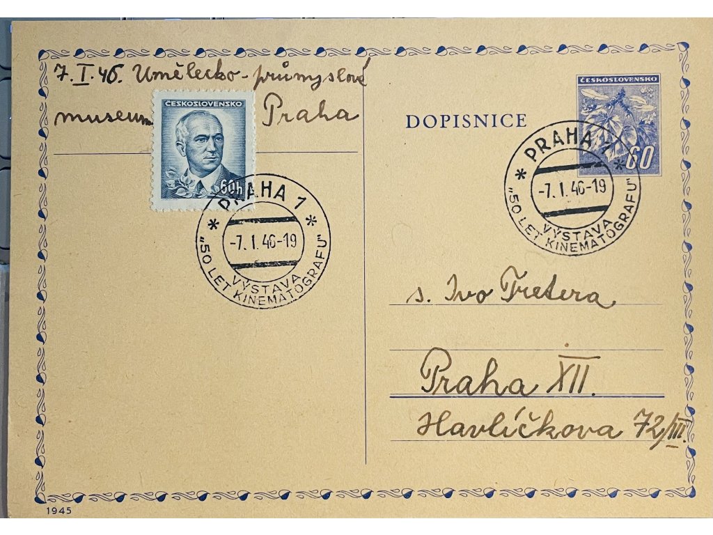 CDV 76 Dopisnice výstava 50 let kinematografu 7. 1. 1946