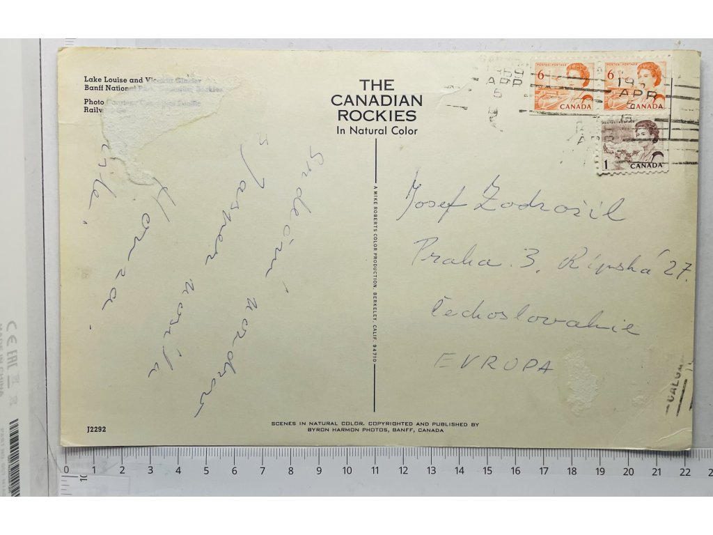 Kanada – Lake Louise a Mount Bonnet, Banff NP, Byron Harmon, použito do ČSSR, 1950s/60s