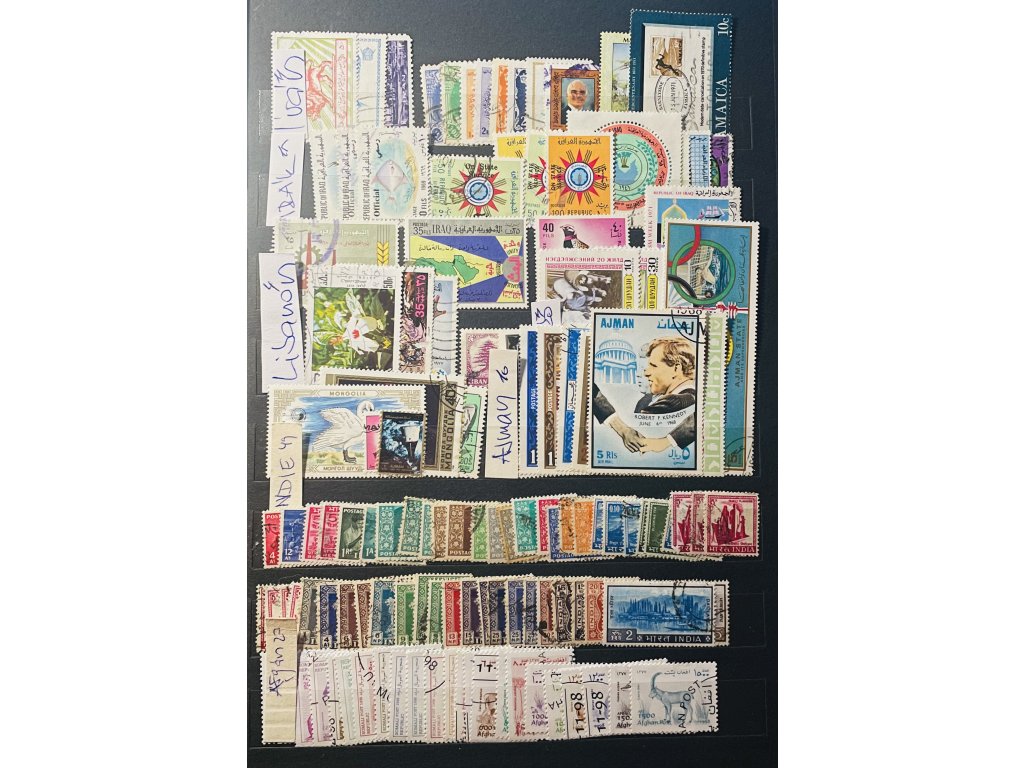 Karta A4 oboustranná 290 ks známek Irán - Irák - Libanon - Indie - Afgán - Ajman a další prošlé poštou Θ