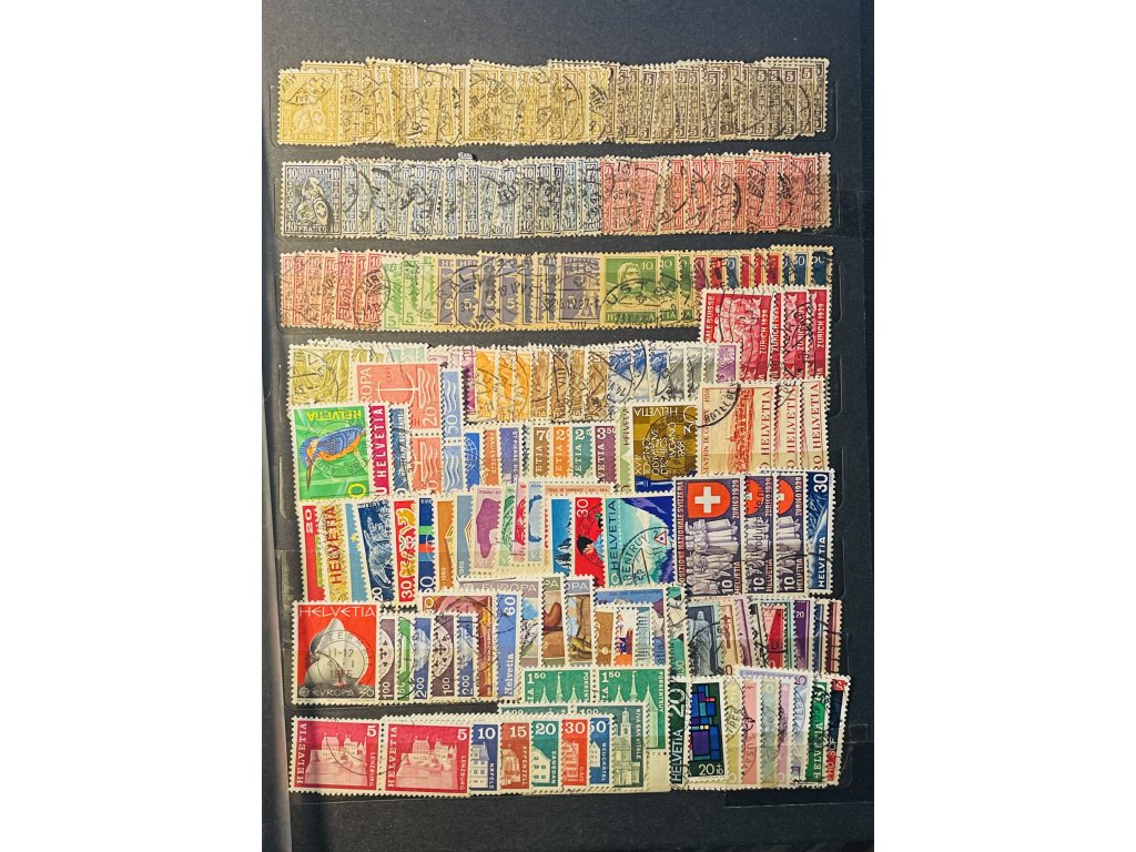 Karta A4 oboustranná Švýcarsko 320 ks známek prošlých poštou pěkná razítka ⊙