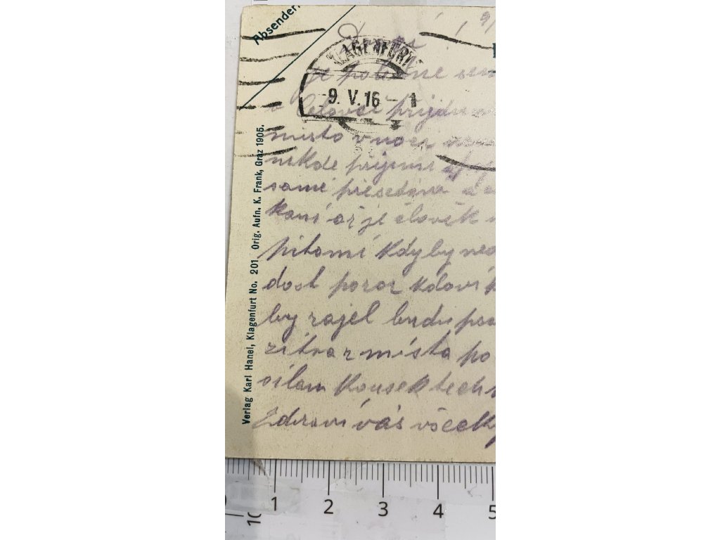 poštovně prošlá 9. V. 1916
