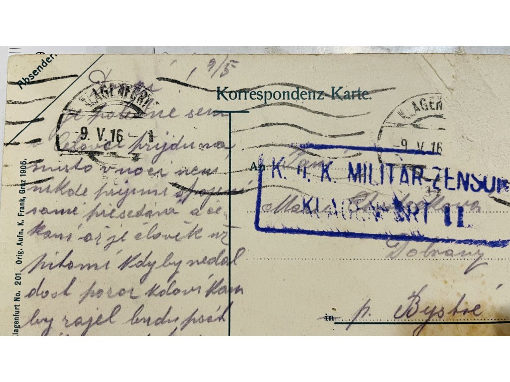 modré razítko K.u.K. vojenská cenzura