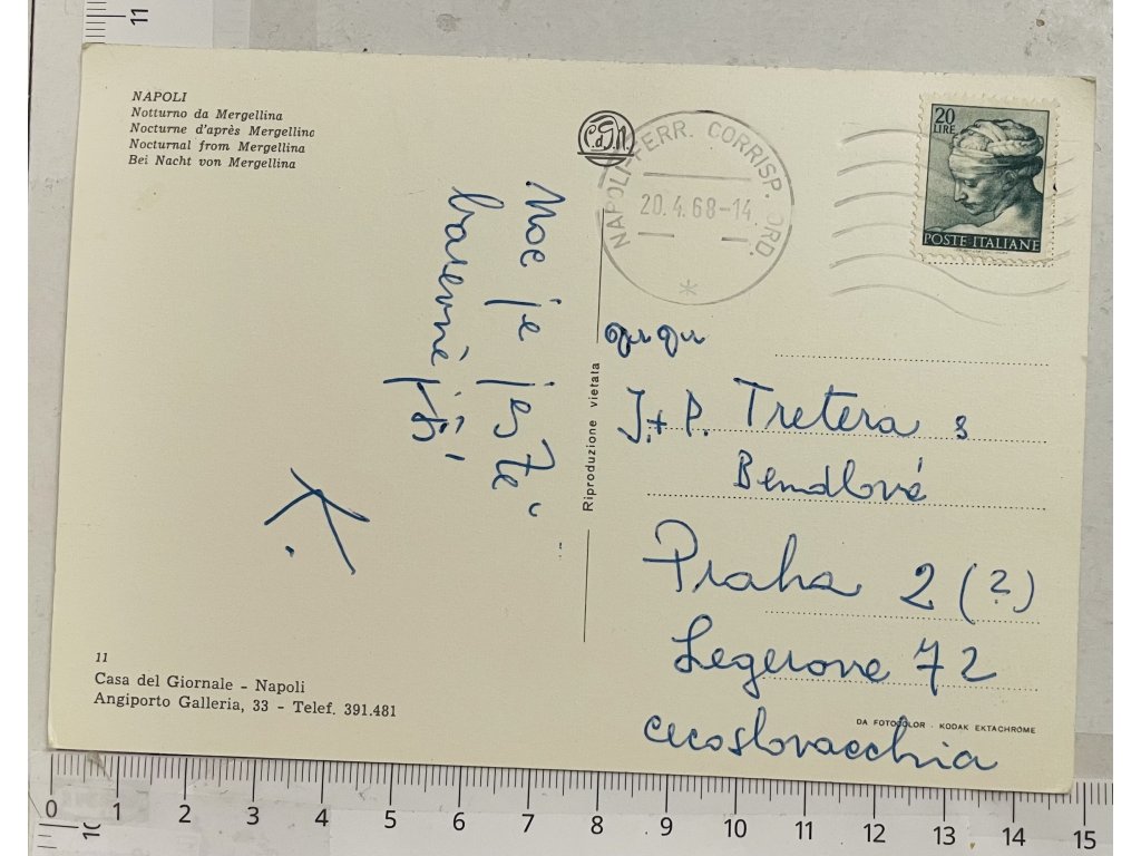 - Napoli - poštovně prošlá 20. 4. 1968