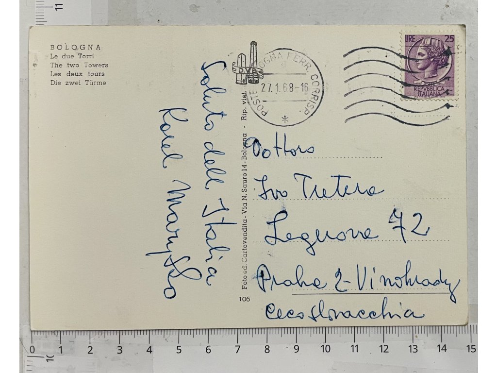 - Bologna - poštovně prošlá 27. 1. 1968