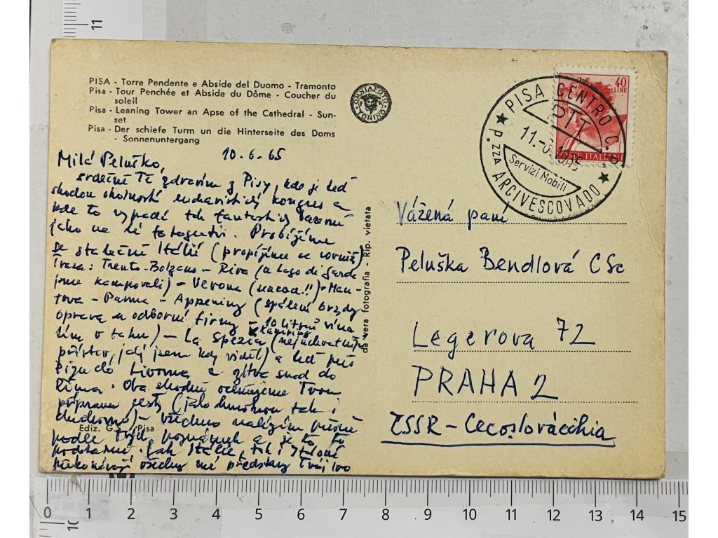 - Pisa - poštovně prošlá 11. 6. 1965