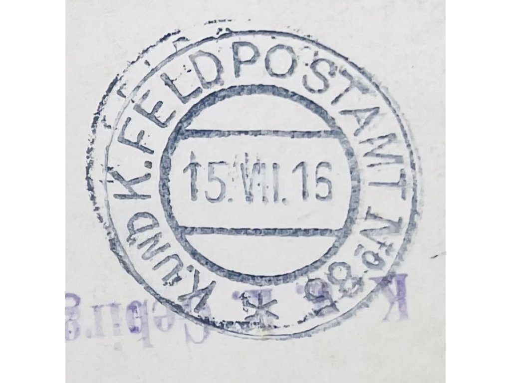pohlednice Kranj, 1914, prošlá polní poštou K.u.k. Feldpostamt 85