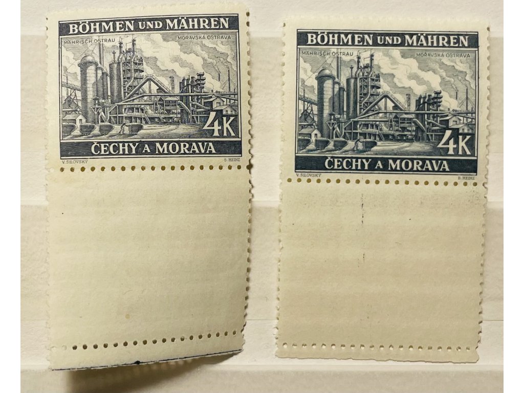Poštovní známky Protektorát Čechy a Morava 4K modrošedá Moravská Ostrava typ I. a II. - KH a KD