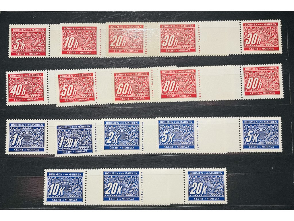 Poštovní známky Protektorát Čechy a Morava - Doplatní známky sestava DL1 - DL14 trhané meziarší ** čisté