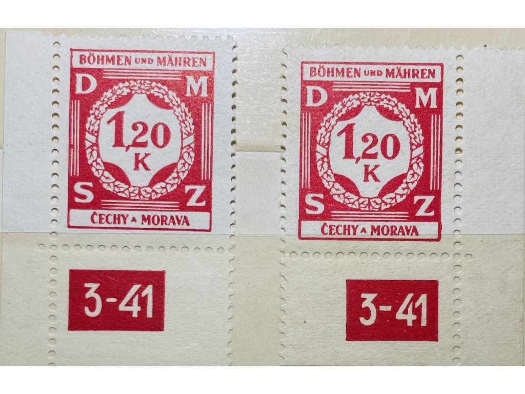 Poštovní známky Protektorát Čechy a Morava Služební známka SL7 - 1,20K červená - L a P roh. zn. DČ 3-41 čisté **