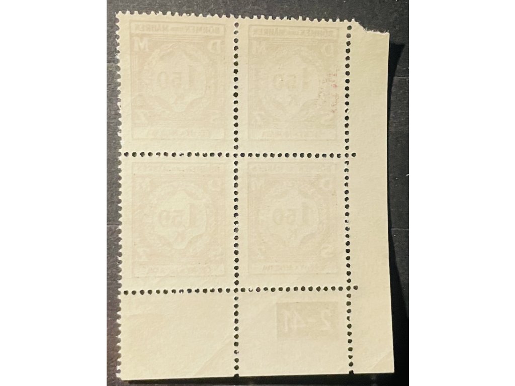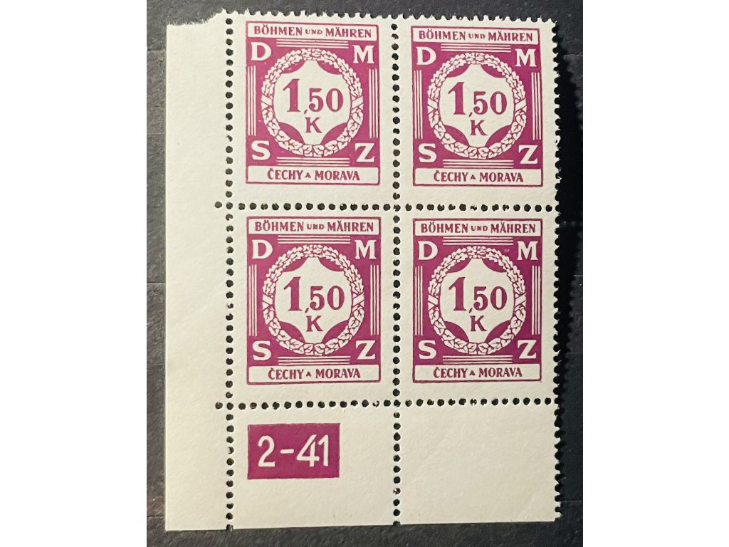 Poštovní známky Protektorát Čechy a Morava Služební známka - 1,5K hnědofialová L roh. 4blok DČ 2-41