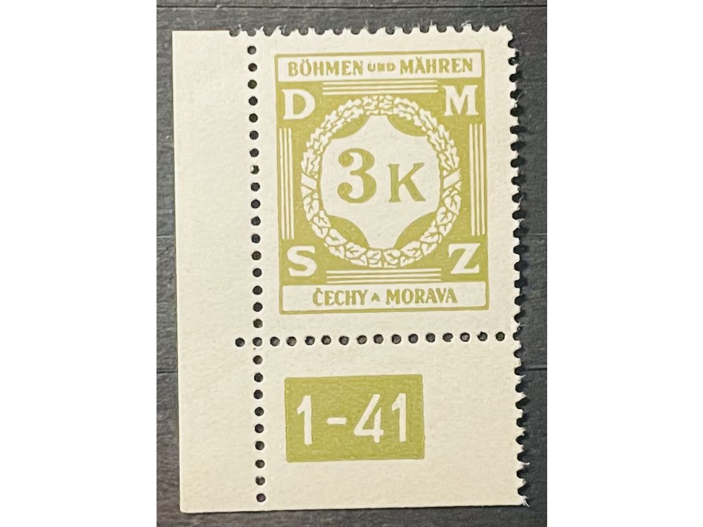 Poštovní známky Protektorát Čechy a Morava Služební známka - 3K tm. zelená - L roh. zn. DČ 1-41