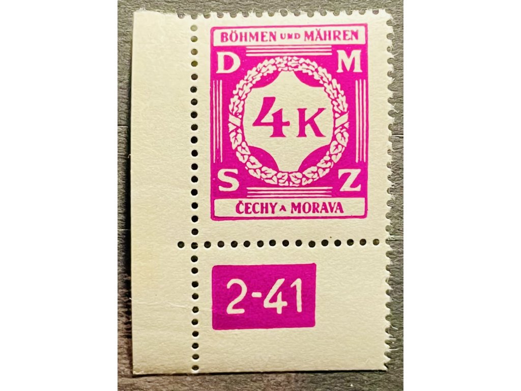 Poštovní známky Protektorát Čechy a Morava Služební známka - 4K fialová - L roh. zn. DČ 2-41
