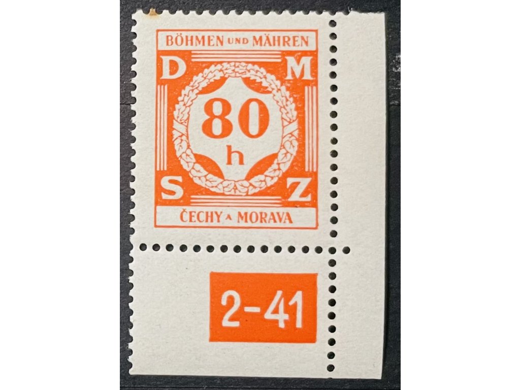 Poštovní známky Protektorát Čechy a Morava Služební známka - 80h oranžová P roh. zn. s DČ 2-41