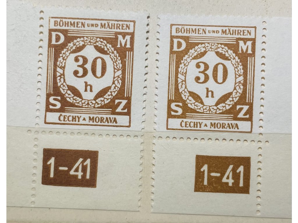 Poštovní známky Protektorát Čechy a Morava Služební známky SL1 30h L a P roh. zn. s DČ 1-41 čisté **
