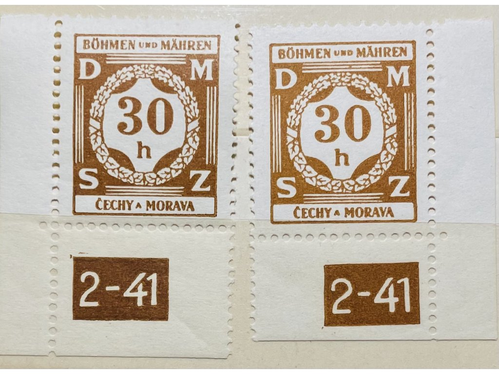 Poštovní známky Protektorát Čechy a Morava Služební známka SL1 L a P roh. zn. s DČ 2-41