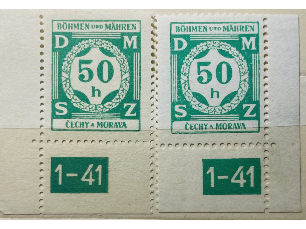 Poštovní známky Protektorát Čechy a Morava Služební známky SL3 - 50h L a P roh. zn. s DČ 1-41