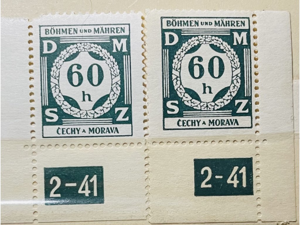 Poštovní známky Protektorát Čechy a Morava Služební známky SL4 - 60h L a P roh. zn. s DČ 2-41