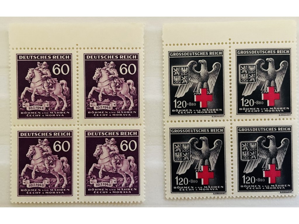 Poštovní známky Protektorát Čechy a Morava - zn. č. 102 a 112 - 4blok s okrajem ** čisté