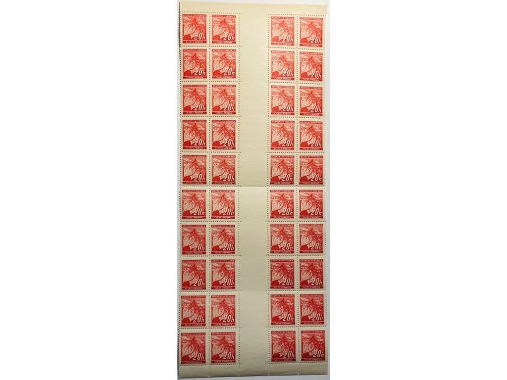 Poštovní známky Protektorát Čechy a Morava zn. č. 22 červená 20h Lipová ratolest - svislý pás meziarší s okraji 20+20 ** čisté
