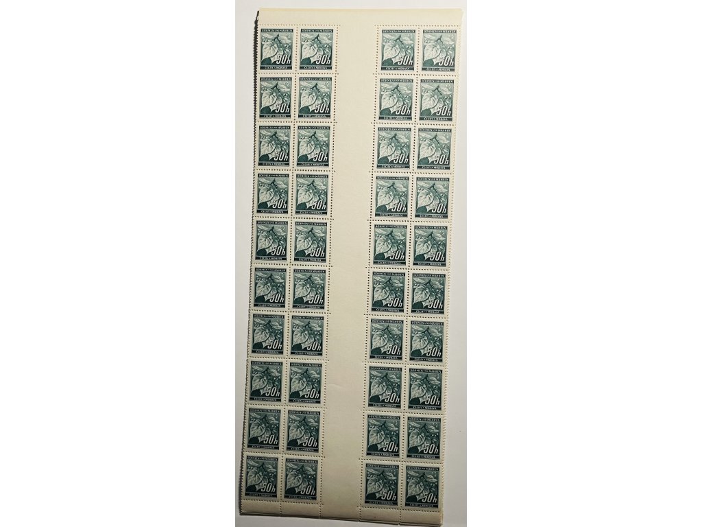 Poštovní známky Protektorát Čechy a Morava zn. č. 27 modrozelená 50h Lipová ratolest - svislý pás meziarší s okraji 20+20 ** čisté