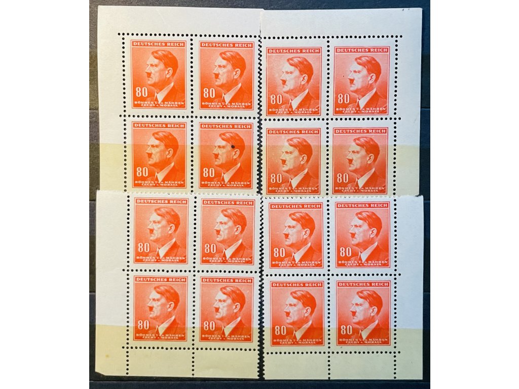 Poštovní známky Protektorát Čechy a Morava zn. č. 83 A.H. 80h roh. 4bloky ** čisté
