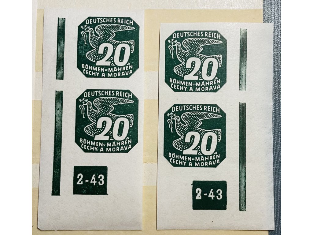 Poštovní známky Protektorát Čechy a Morava - zn. novinová NV16 - 20h vydání II. L a P roh. zn. s DZ 2 - 43 ** čisté