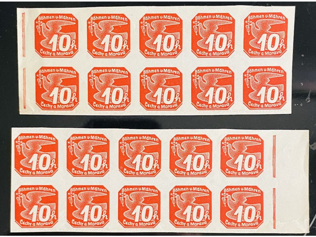 Poštovní známky Protektorát Čechy a Morava - zn. novinová NV5 červená 10h vydání I. L a P 10blok s okr. ** čisté