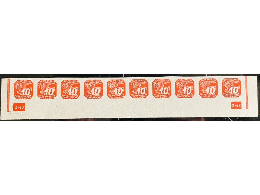 Poštovní známky Protektorát Čechy a Morava - zn. novinové NV14 hnědo-červená 10h vydání II. dolní 10ti pás s DČ 2 - 43 nepřerušený rám ** čisté