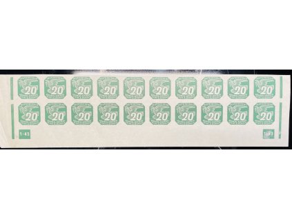 Poštovní známky Protektorát Čechy a Morava - zn. novinové NV16 černo-šedo-zelená 20h vydání II. dolní 10ti pás s DČ 1 - 43 nepřerušený rám ** čisté