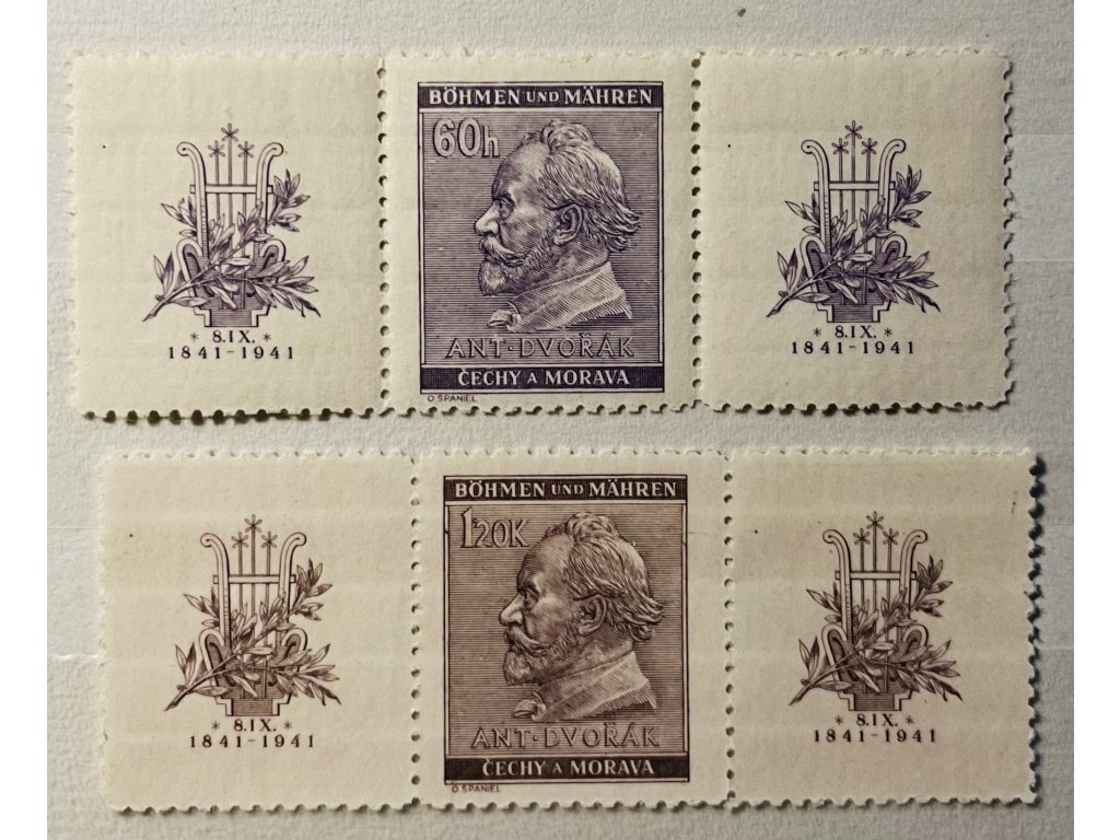 Protektorát Čechy a Morava - zn. č. 62 - 63 výročí 100 let narození A. Dvořáka, varianta VK - 8 ** čisté